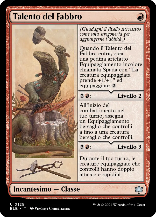 Questa modifica introdusse una nuova sbavatura. La Figura del Destino raddoppiava le sue statistiche con ogni attivazione. Cambiando la prima attivazione da 2/2 e 2/3, avevamo spezzato quella struttura. Invece di raddoppiare, decidemmo che avremo potenziato la creatura di uno in più ogni volta, quindi la prima attivazione avrebbe fornito uno di forza in più. La seconda attivazione avrebbe fornito due di forza in più, mentre la terza attivazione avrebbe fornito tre di forza in più. Per farle percepire come connesse, la costituzione sarebbe sempre stata maggiore di uno: cresceva da 2/3, a 4/5, fino a 7/8.
